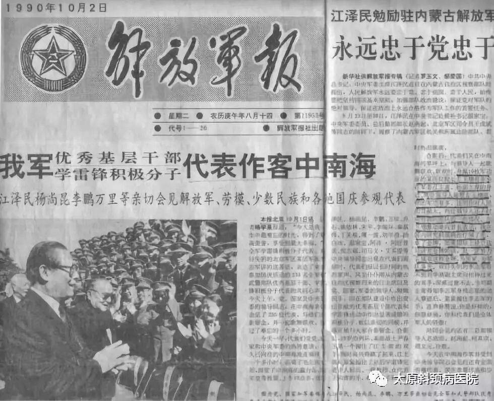 国庆45周年,军队英模左玉增教授参加国庆庆典,在城楼观礼时的照片,成为94年11期解放军画报的封面人物。